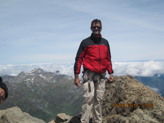La actividad que realizamos fue la vía normal al Midi d´Ossau. Este recorrido es muy bonito y recomendable como iniciación en la alta montaña. Hay tres chimeneas de poca dificultad (PD+ el paso de mayor dificultad está en la primera chimenea) pero que obligan a ir atentos, sobre todo cuando vas con debutantes. En cada tramo hay montadas reuniones para asegurar los pasos delicados y que a la postre sirven para los «rapel» de descenso. Una vez superadas las chimeneas y ya en la zona denominada «Rein de Pombie» es mejor ir por la izquierda para así ganar la arista y finalizar el recorrido llegando a la cumbre de forma espectacular.