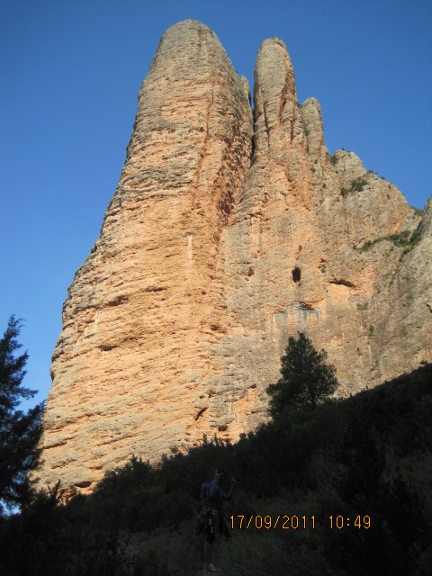 Ruben me comenta que nunca ha escalado en el Fire y que no le importaría hacer «la Galletas». Bien, me parece buena alternativa, al fin y al cabo es una de «las cien clásicas» -le digo-, pero tendré que rebuscar en mi mala memoria el recorrido, aunque de lo si que me acuerdo es el «guano buitrero» que inunda la chimenea. ¡Que guarra está siempre!!!!!!.