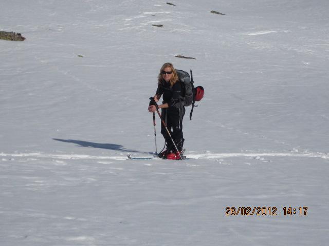Nacho me releva hasta el final de la pala……..se hace duro pero ya estamos casi en la cresta. Esperamos a Pilar y mientras tanto él me propone bajar ya, le contesto que no hay problema. Su recién estrenada paternidad le da poco margen para las escapadas y le gusta llegar a la hora comprometida. Lo entiendo perfectamente.