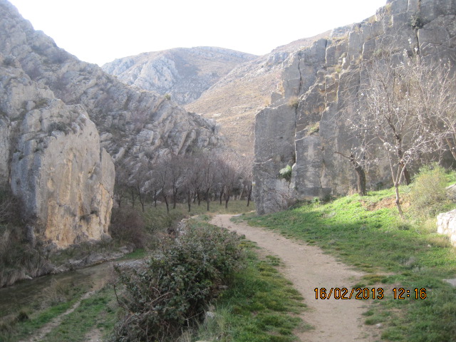 De los cuatro sectores equipados de la zona nos inclinamos por el más alejado, «Las Jabonerías». Este emplazamiento está equipado con unas 15 vías según la guía de escalada ARAGON (Barrabes editorial). Hicimos 6 vías en total. Las sensaciones fueron muy buenas puesto que me lleve un 6b+ (*) a vista, para mi más que suficiente dado el «parón» de los meses anteriores. Chabi no sólo lo subió sino que se paseo y Angela y Kike hicieron sus primeras incursiones por el sexto grado con mucha dignidad.