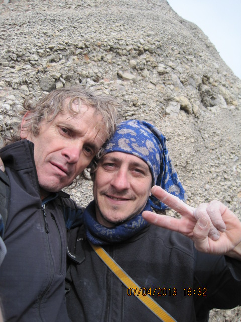 Dos tiradas más entre 40 y 50 metros y de grado menor (IV /V) nos depositan en la cumbre. Allí al fondo después de pasar una sabina dos «paraboles» indican el final.Bueno que………andando o rapelando…..como bajamos? – interroga Chabi – Andando que en esta vida cuantos menos rapeles hagamos mejor……total el tiempo que se invierte entre una opción y otra es parecido, y por el mismo precio….menor riesgo…….que ya somo perros viejos…….¿no te parece?…….