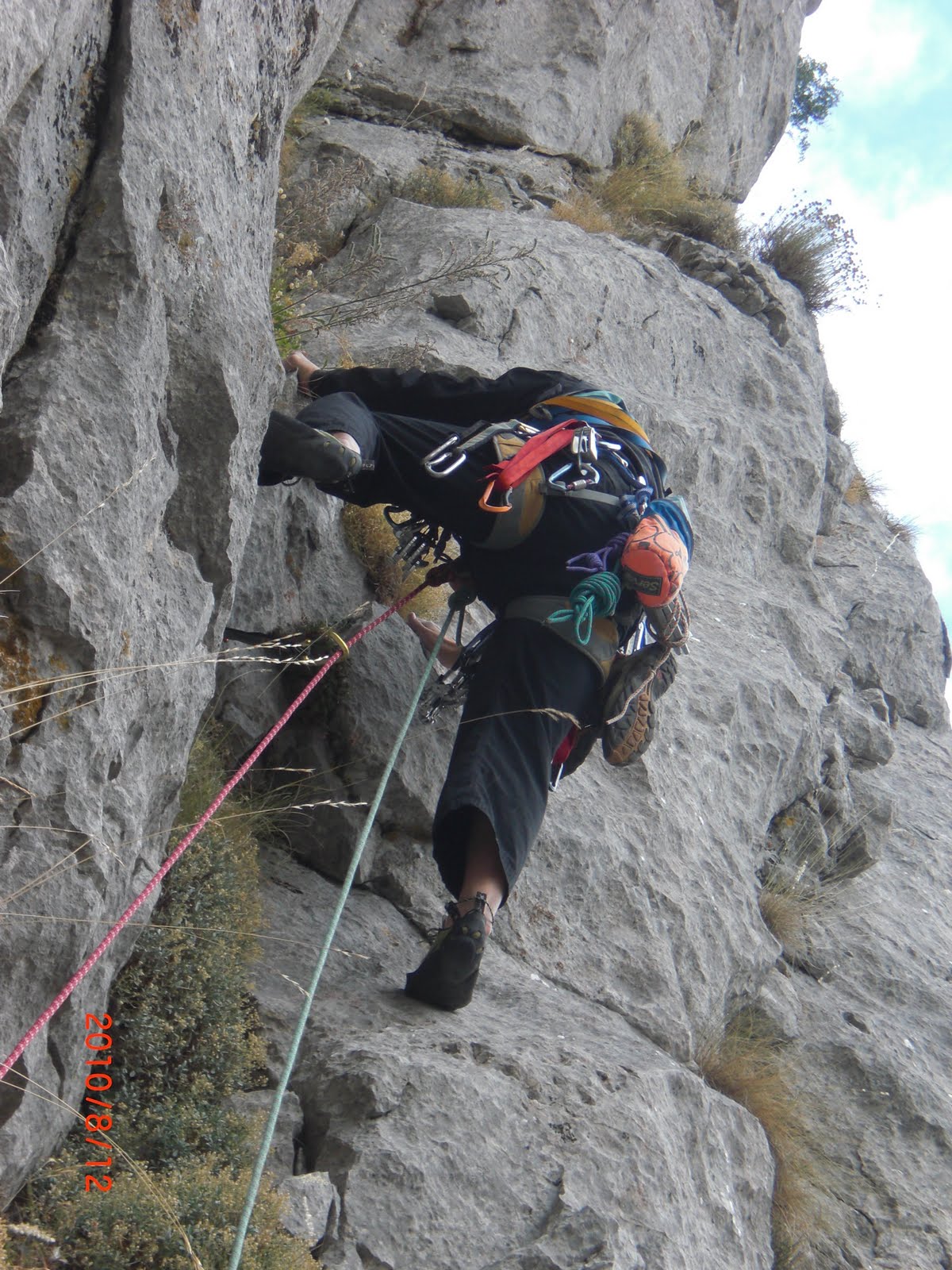El caso es que la fisura se protege bien y los tornillos del parabolt se pueden chapar con los fisureros de cable (todos menos el primero que falta, que no llegara a enganchar) En el quinto largo tambien falta un chapa en la travesia, y se soluciono con un fisurero de cable. La salida del sexto largo va hacia un techo evidente desde la reu y antes de meterse debajo del techo hay que ir hacia la derecha bordeandolo hasta lleegar a la reunion. La bajada por la misma via. Nosotros bajamos en tres rapeles; uno hasta la R4 otro hasta la R2 y otro hasta el suelo con cuerdas de 70 metros. Con cuerdas de 60 no se puede por que desde la R4 hasta la R2 hay 70 metros justos.