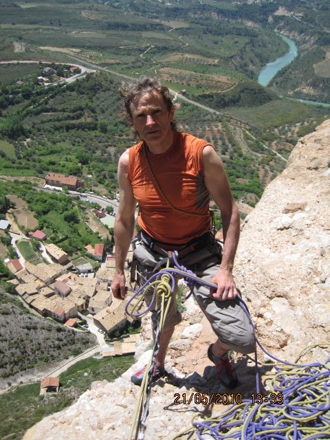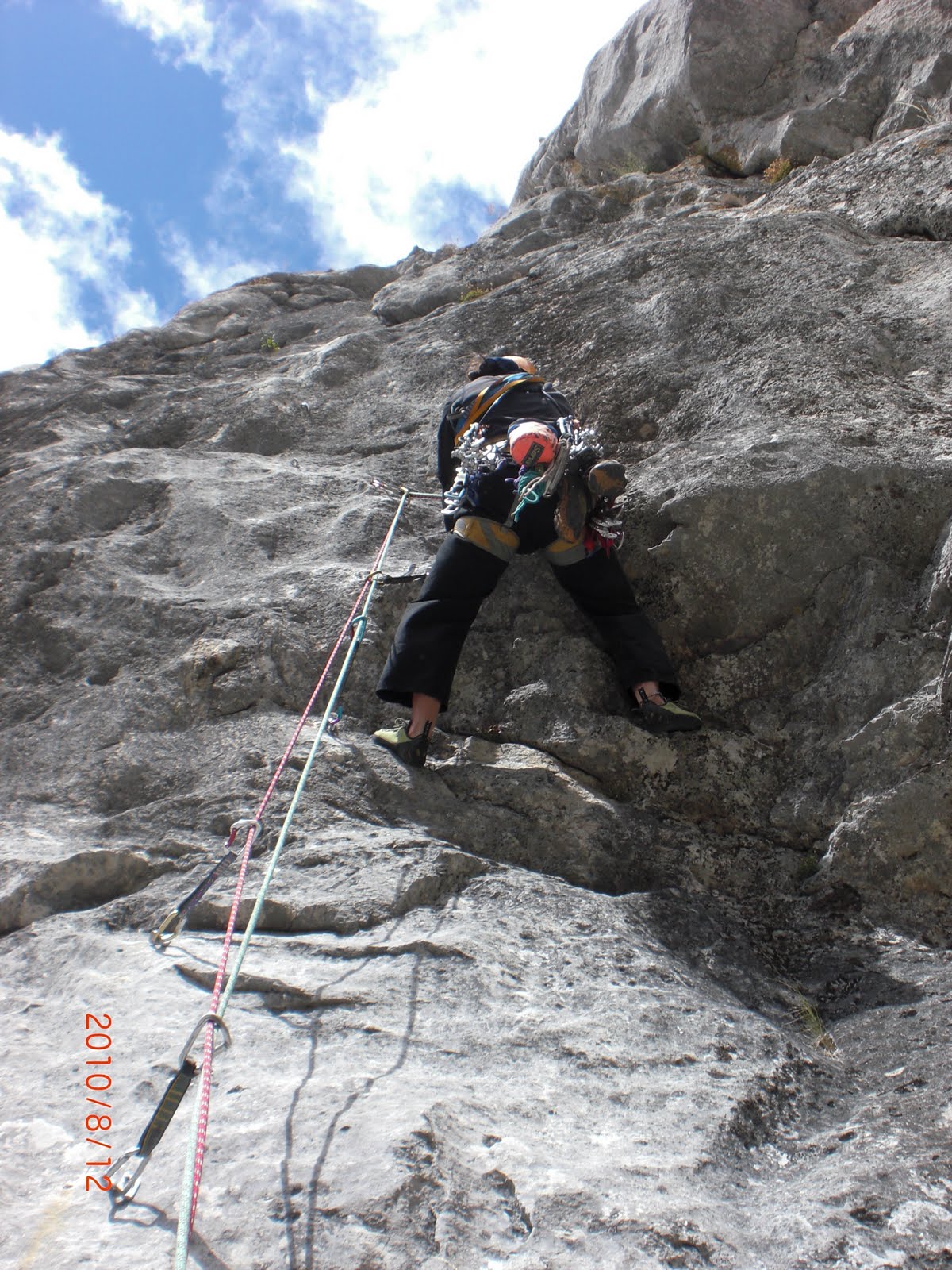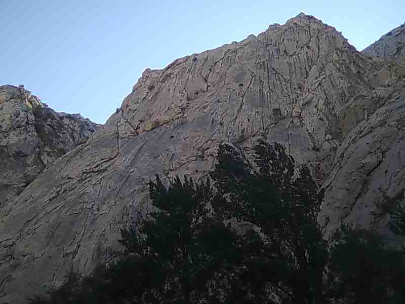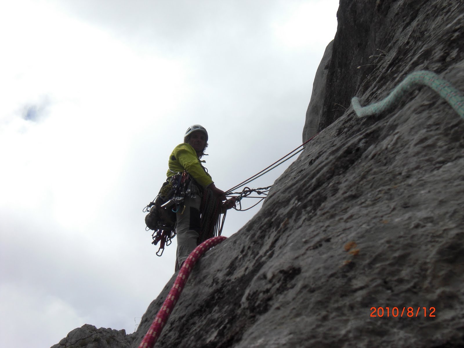 El caso es que la fisura se protege bien y los tornillos del parabolt se pueden chapar con los fisureros de cable (todos menos el primero que falta, que no llegara a enganchar) En el quinto largo tambien falta un chapa en la travesia, y se soluciono con un fisurero de cable. La salida del sexto largo va hacia un techo evidente desde la reu y antes de meterse debajo del techo hay que ir hacia la derecha bordeandolo hasta lleegar a la reunion. La bajada por la misma via. Nosotros bajamos en tres rapeles; uno hasta la R4 otro hasta la R2 y otro hasta el suelo con cuerdas de 70 metros. Con cuerdas de 60 no se puede por que desde la R4 hasta la R2 hay 70 metros justos.