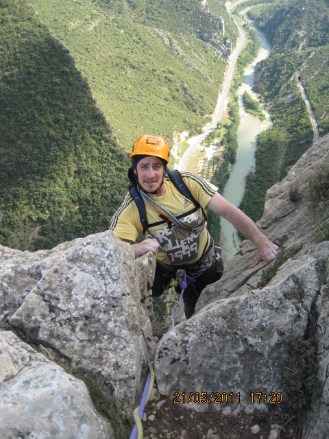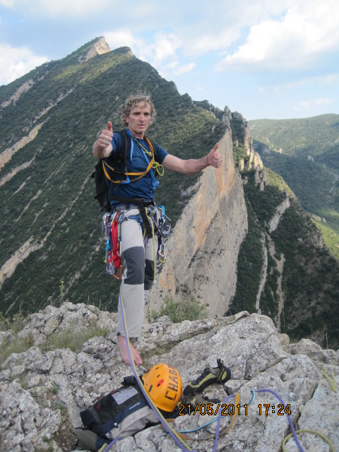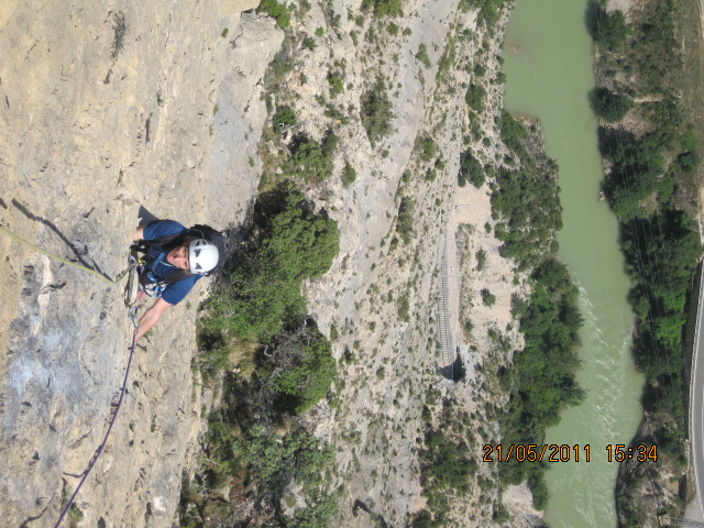 Vaya pedazo de tapia que nos hemos «currao» hoy – dijo Chabi – estoy agotao. Y no era para menos veníamos de hacer la CADE, vía situada en la Pared de les Bagasses en Terradets. Impresionante vía clásica, 500 metros y 19 largos, una escalada de las de toda la vida.