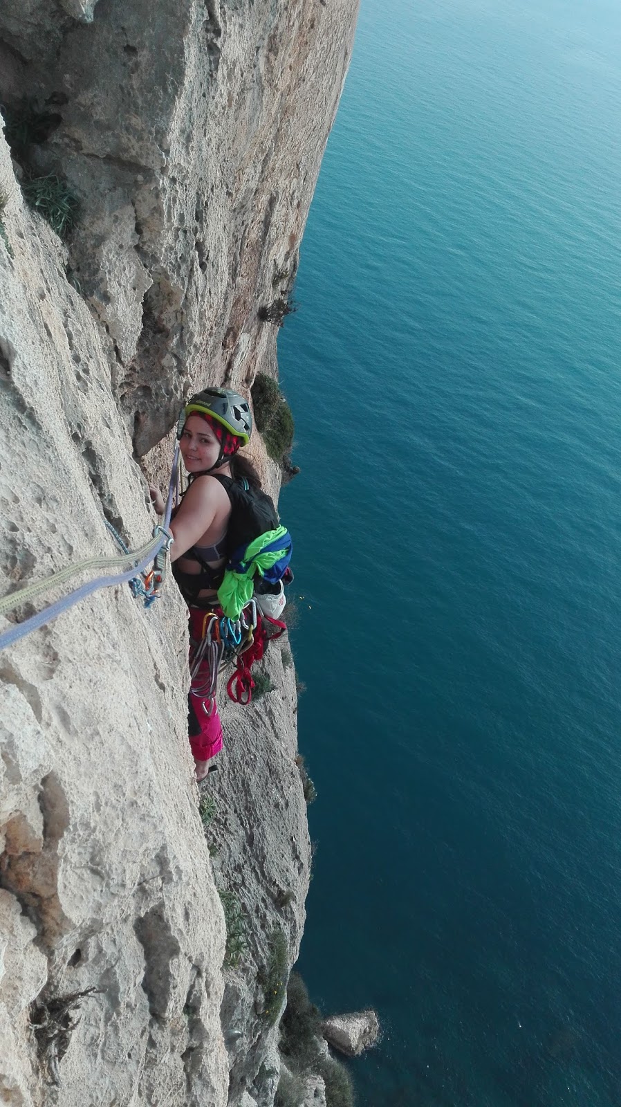 La salida de la cueva se hace por su izquierda mirando al mar. Nada mas salir hay un químico que asegura el paso. Salir al vacío desde la cueva es impresionante. Despues de salir, tirar recto para arriba con tendencia izquierda, pues la reu está un poco a la izquierda y si seguimos rectos, nos la pasaremos..