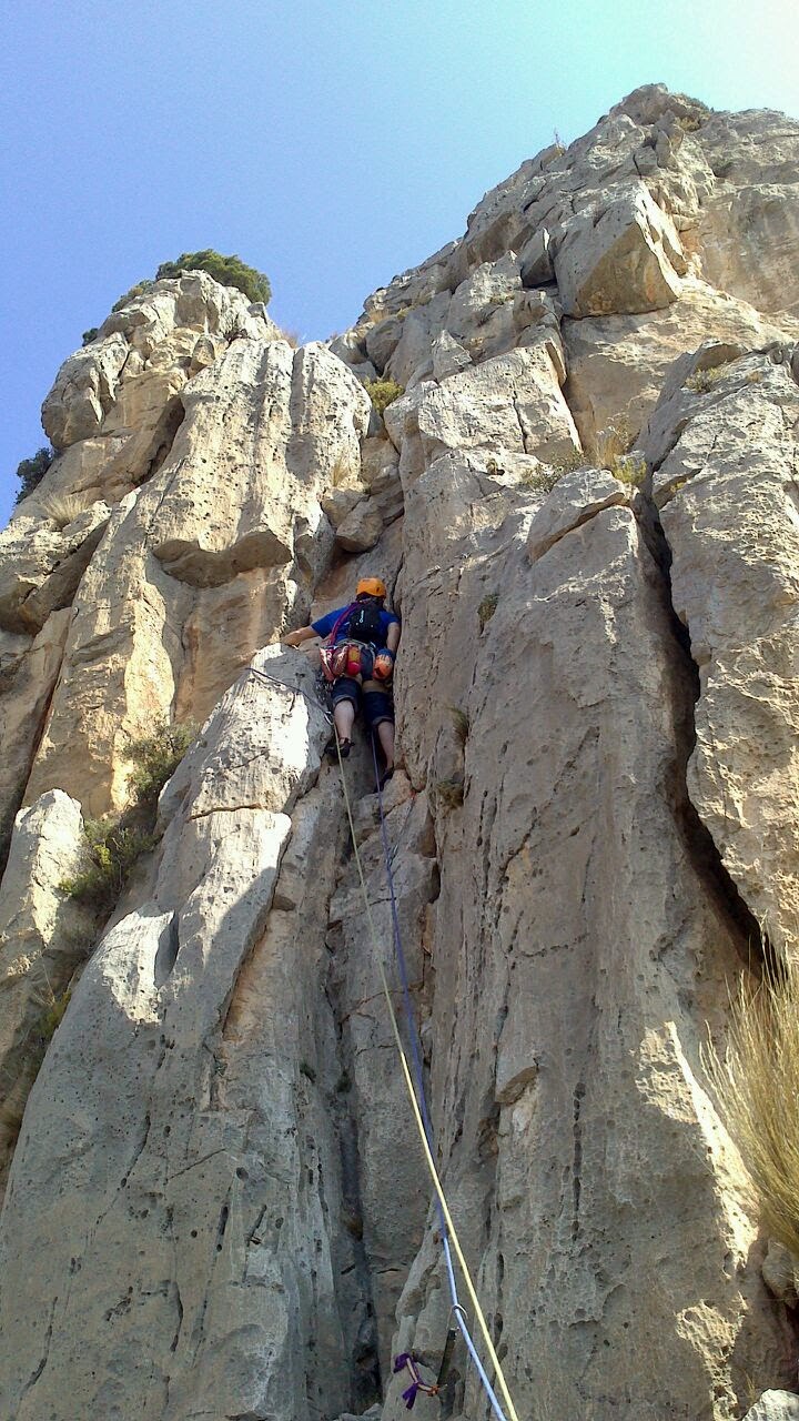 Hablando con alguna escaladora de la zona, nos dijo que habíamos tenido mucha suerte, pues lo normal en el Puig Campana en esas fechas es que el calor sea sofocante y que son escaladas reservadas para finales de otoño e invierno.
