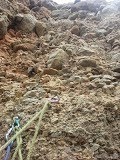 En el primer largo(6a+) tenemos un comienzo por roca muy buena y luego, segun va tomando verticalidad la roca empieza a empeorar hasta convertirse en una costra suelta donde los pocos agarres buenos que encontraremos son los que son, no busques mas. Un largo de unos 35 metros muy bueno y bonito de escalar.