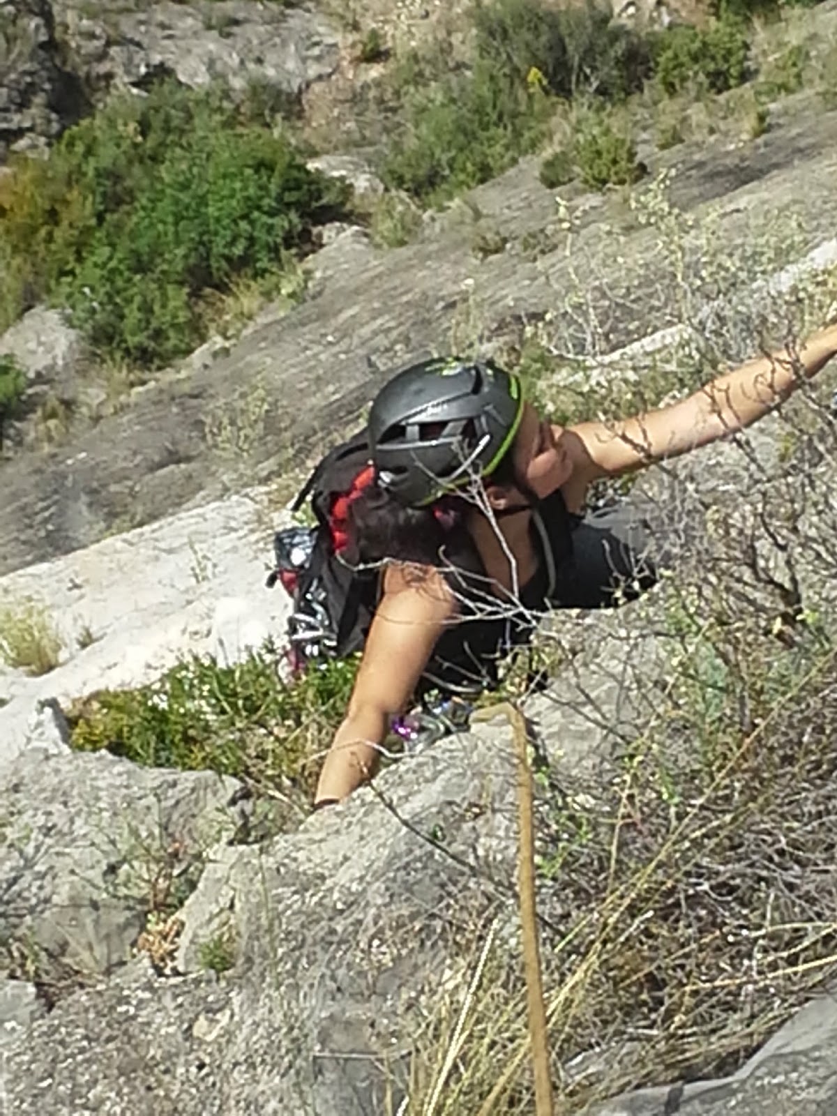 Una muy buena via, en el estilo de la anterior y con un poquico mas de dificultad y de exposición en algún tramo, donde el parabolt anterior quedaba en casa Juanito. El ultimo largo decidí salir recto por las fisuras y bloques de la “Jose Luis Abos” (5º / 5º+) una via caída en el olvido y que solo tiene un par de spits en el ultimo largo, pero con unos pocos friends pequeños y algún fisurero se protege bien y le da un toque al final de la jornada con sabor a escalada clásica.