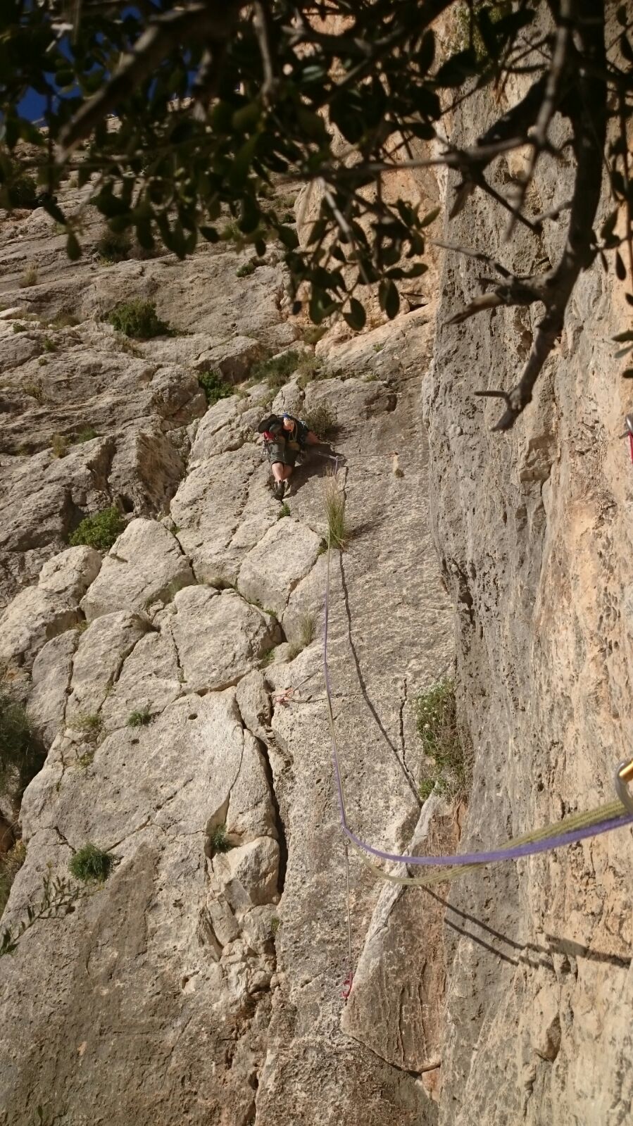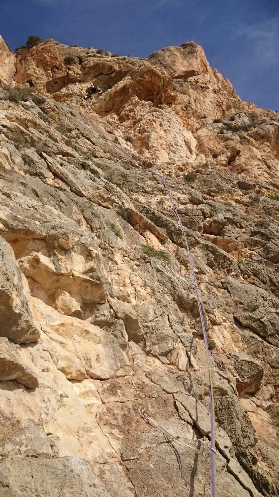 Tres espléndidos largos, algo patinosos, de meter fierros que entran a cañón y con algunos expansivos, conforman la «chicha» de esta formidable ruta. A pesar de lo pulido y de los sartenazos que hay entre seguros, la disfruté un montón. Para repetir.