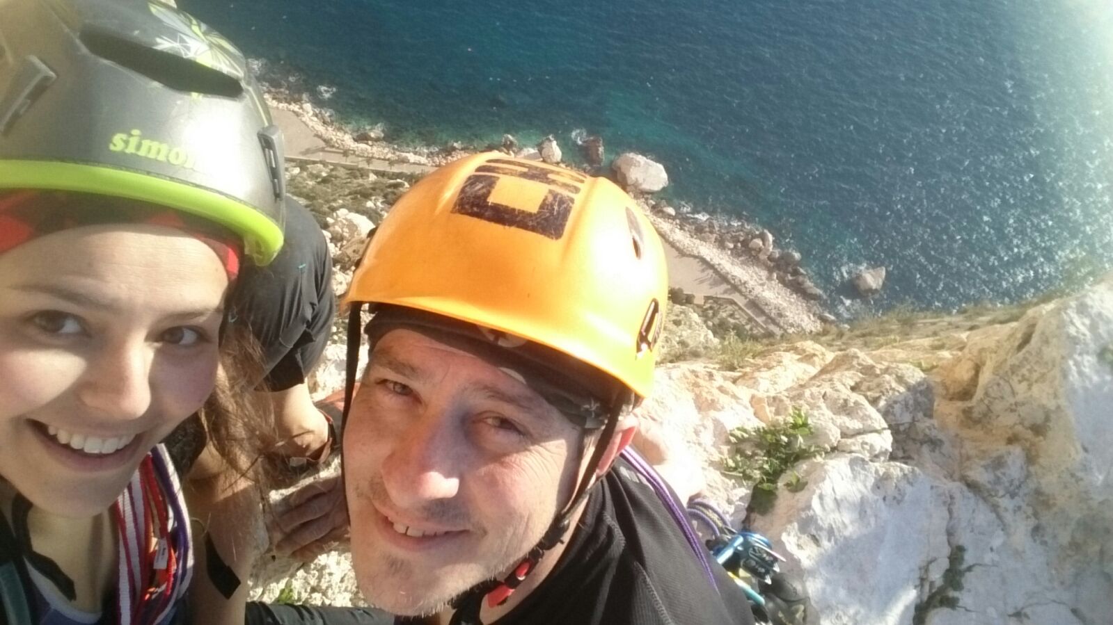 Comienza Angela el primer largo (4+) hasta la reu de la placa del segundo largo. un largo en el que hay que ir un poco atento a donde te agarras.