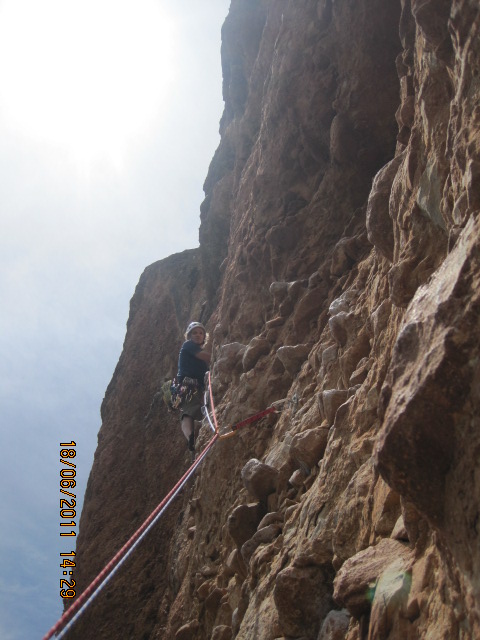 4º largo: 5+ /6a  tan bonito como el resto de la via. Buenos agarres y disfruton. La roca empeora bastante en el tramo en el que nos metemos en la fisura, pero con cuidadico y paciencia sin problemas.