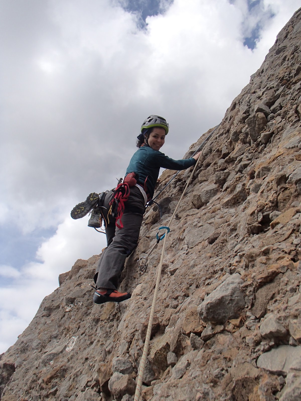 En este cuarto y último largo, el más corto, (IV+ / V dependiendo también delas reseñas) fue un mero trámite, puesto que una vez  abandonada la reunión la pared pierde verticalidad y por lo tanto dificultad, aunque sin bajar la guardia por la calidad de la roca.