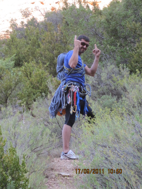 Joder!!!!… estará mayor el tío pero… yo, aún no había bajado de la furgoneta cuando él ya tenia puesto el «arnés» y la «quincallería» colgada, y además me estaba mirando entre impaciente y cabreado por mi lentitud.