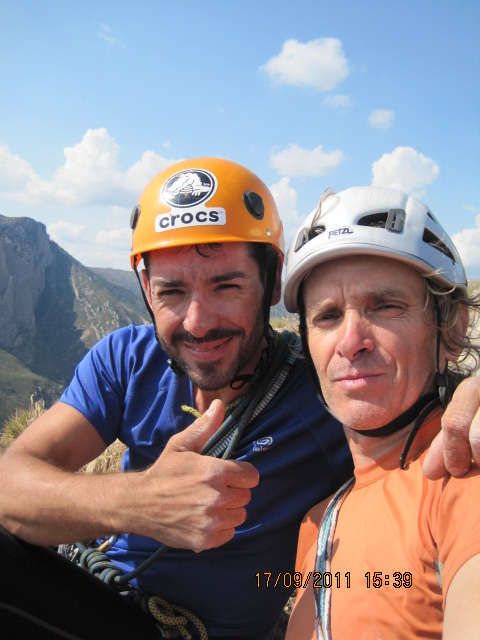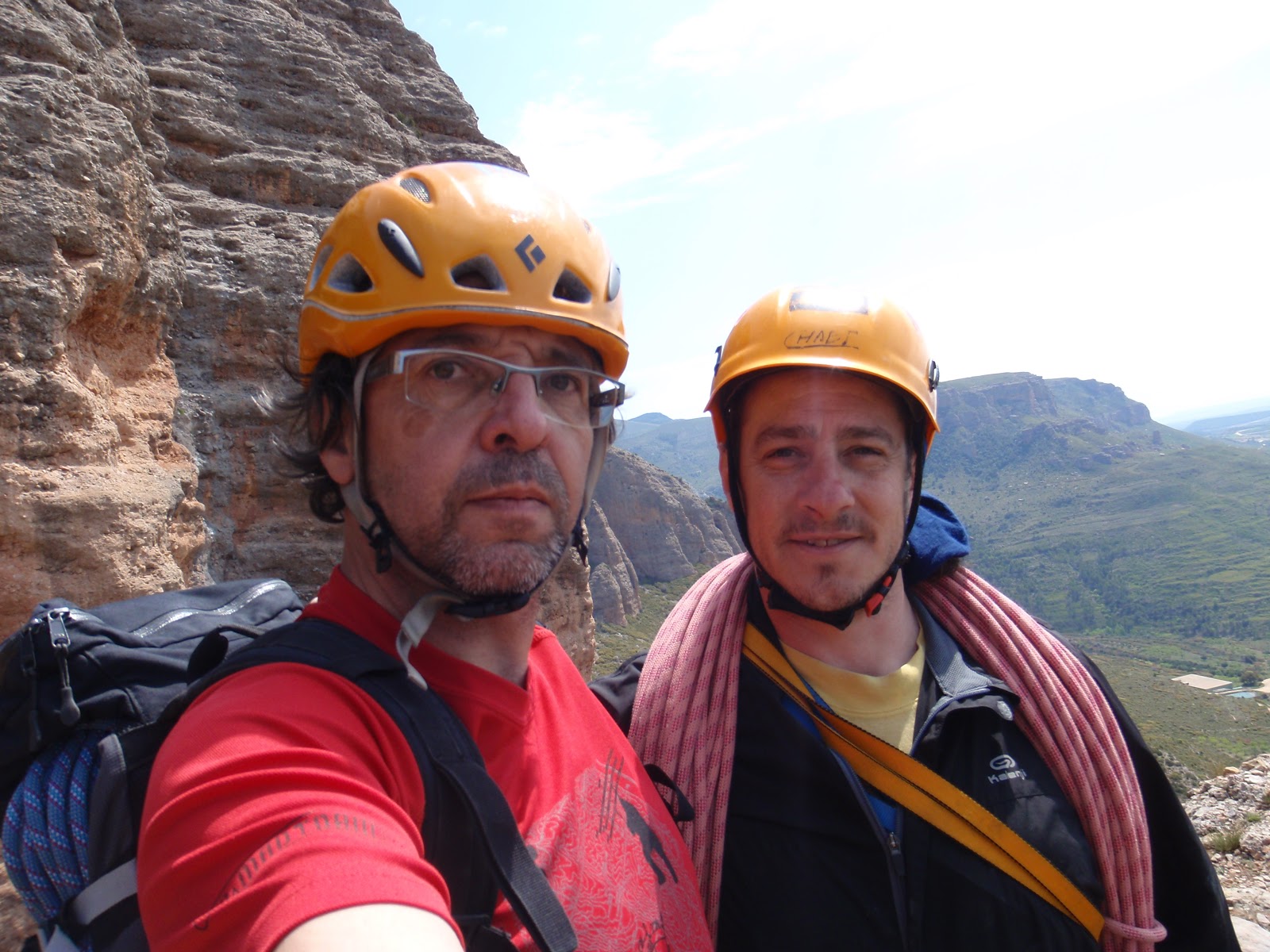 Aún no eran las 20.00 cuando pisábamos la cumbre, estuvimos poco rato por la sensación de frío que nos daba el viento que en ese momento soplaba y por lo avanzado de la hora. Un par de rapeles por la vía normal nos depositaron en el suelo contentos por haber cumplido con otro objetivo, después cerveza como debe ser…………..